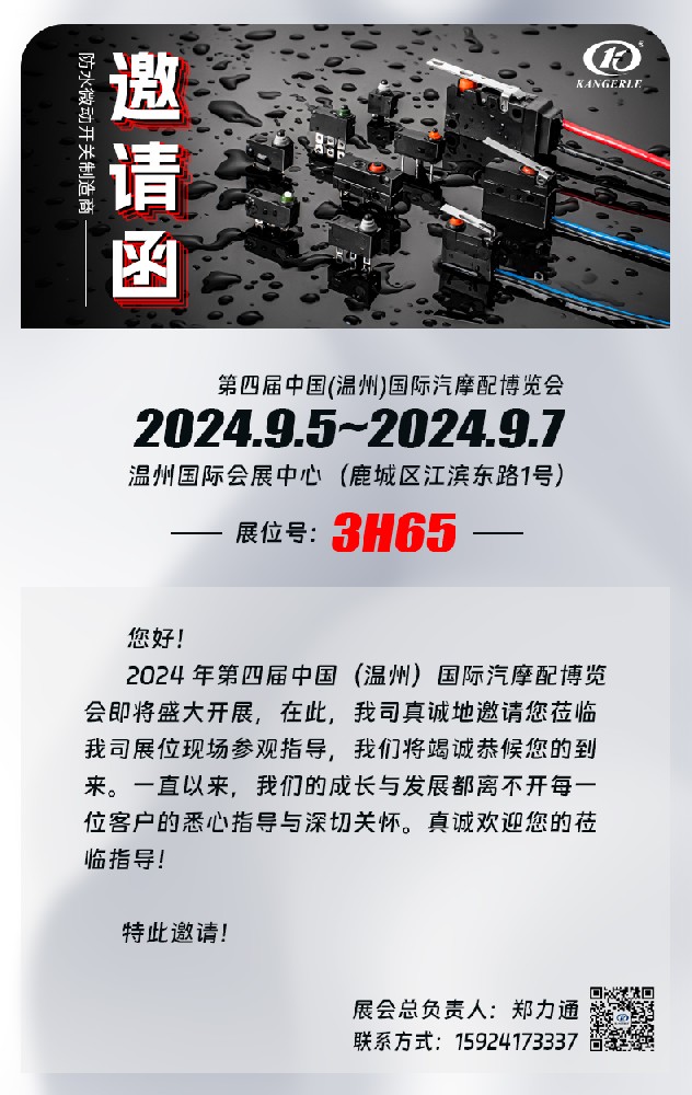 尊敬的客戶:您好!我們誠(chéng)摯地邀請(qǐng)您參加即將在2024年9月5日至7日舉辦的第四屆中國(guó)(溫州)國(guó)際汽摩配博覽會(huì)?!ぁぁ?/p>
